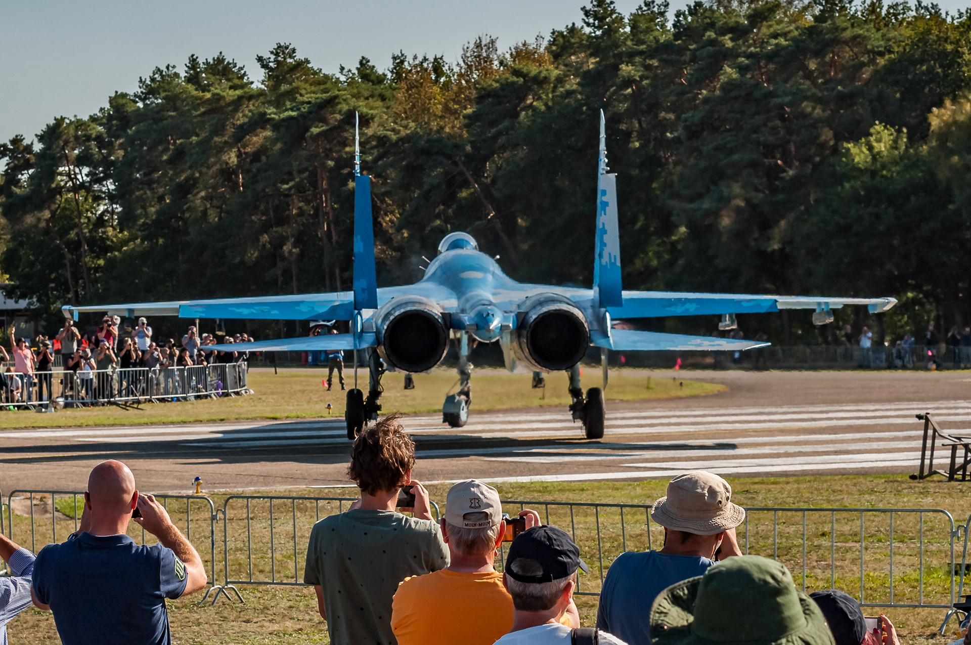 The combination of Spotter’s Day at Kleine Brogel Airbase when participants for the Sanicole Airshow come in for X-Servicing and rehearsals for the airshow plus the Airshow itself is always a nice experience.. while the weather plays along…. This year some of the spotters got a special treat from the Ukrainian SU27...they were literally ‚blown away‘...